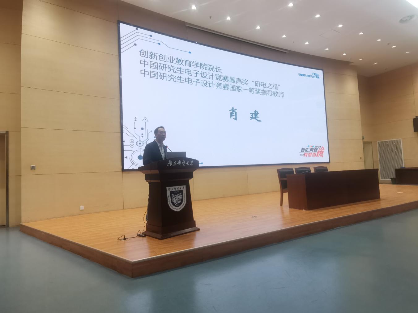 最后,创新创业教育公司经理 肖建教授做总结发言,他指出,研电赛是目前“中国研究生创新实践系列大赛”中最主要的赛事,赛事含金量高、学科交叉广泛、产业联系紧密,是开展研究生创新型人才培养的良好载体。他鼓励同学们踊跃报名参赛,全面提升自身的能力与素养,不负韶华,不负自己。