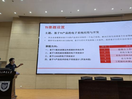接着,研究生电子设计竞赛组委会的刘霆轩副秘书长向与会师生介绍了研究电赛的总体情况,包括研电竞赛赛题特色、竞赛内容、时间安排、历年参赛情况等;随后兆易创新的王霄经理、地平线的姜瑞滢经理、德州仪器的谢胜祥经理、优利德的陶金经理分别就各自企业赛题的内容做了细致的赛题解析,帮助员工更精准的备赛研电赛。随后,公司研电赛优秀指导教师代表万洪丹教授和研电赛国一获得者孔理想学长从不同角度分享了研电赛的宝贵参赛禁经验。