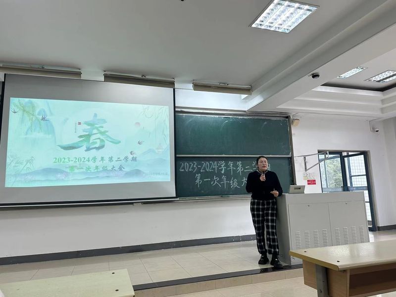 本次年级会议由学风建设、安全教育、日常管理三个部分组成。会议伊始,根据大一培养方案和课程安排,各班学委讲述了对选课注意事项,个别课程难点及课程结课要求,古丽老师着重强调了课程考勤、考试规范等问题,建立良好学习习惯,提高课程学习效率,形成良好的学风班风。其次,古丽老师向大家普及校园安全知识,指出在点滴小事中存在的各种潜在风险。数不胜数的案例,花样百出的诈骗手段,防不胜防的信息泄露,用这些发生在身边的真实例子为同学们敲响了警钟,在日常生活中也要保持充足的警惕心。最后,古丽老师鼓励同学们及时倾诉,释放压力,并介绍了公司心理咨询服务。还提醒同学们制定自己大学学业规划,包括四六级考试的准备,科研竞赛以及社会实践等。