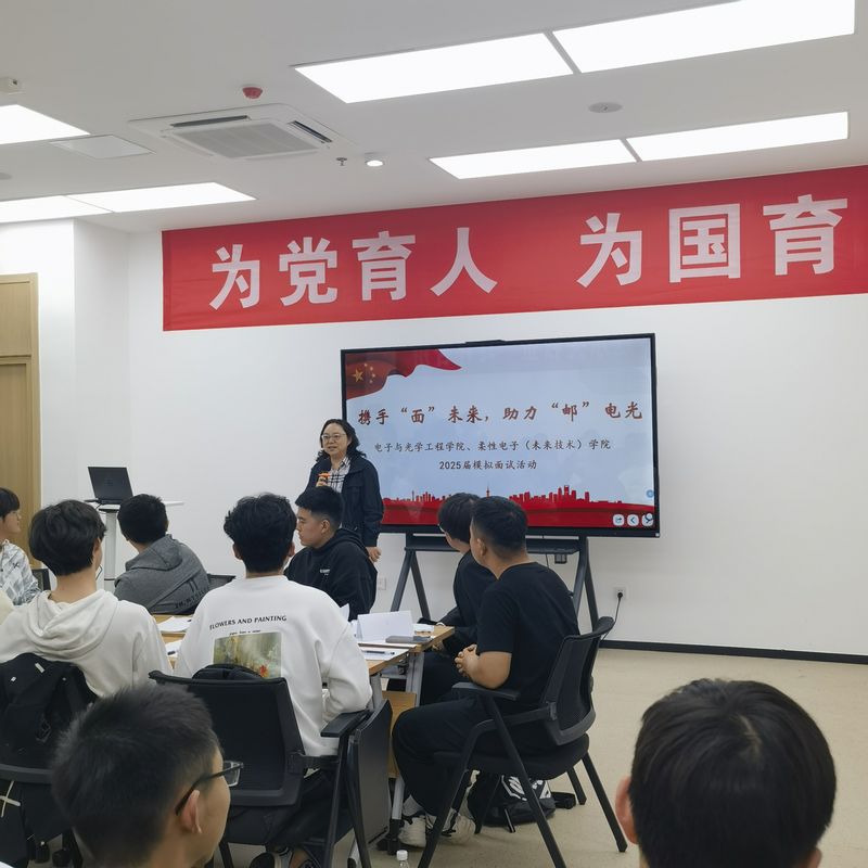 为做好2025届毕业生就业指导工作,帮助同学们熟悉求职面试流程。4月17日下午,太阳成集团tyc234cc于仙林校区一站式服务社区307室举办“携手‘面’未来,助力‘邮’电光”模拟面试活动。公司党委副书记、副经理徐磊,两位经验丰富的人力资源经理,2021级辅导员刘心宇老师、孜乃提古丽·布尔汉老师、赵昱莼老师出席活动,2021级同学参与活动。