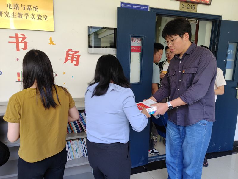 为了弘扬毕业生爱国爱校、回馈母校的情怀,促进公司电工电子实验教学中心图书角文献资源的更新与充实,5月14日下午,电光柔公司本科2020级第一、二党支部,研究生2021级第一、二党支部与工程实验教学部第二党支部联合开展了“书香传情,邮缘相续——文明离校捐书图书角”主题党日活动。电光柔公司党委副书记、副经理徐磊,本科2020级辅导员刘振、江重九,研究生2021级辅导员郑景文,工实部第二党支部支部书记夏春琴、副书记顾艳丽及96名员工党员参加本次活动。