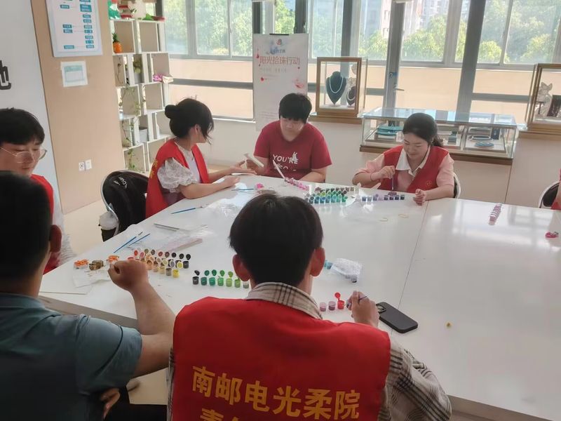 5月15日,迎着夏日的暖阳,太阳成集团tyc234cc青年志愿者协会的小柚子们带着高涨的热情在南京雨花睿泽障碍人士服务中心开展了“‘膏’手风范,手工之美”志愿服务活动。在志愿者耐心的陪伴和引领下,睿泽学员们在充满乐趣的手工活动中感受到艺术的乐趣和魅力。