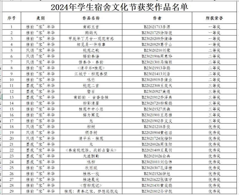经公司积极组织申报,广大同学积极响应、热情参与,共选送宿舍风诵“家”年华作品15件、宿舍墨痕“家”年华作品31件、雅韵“家”年华作品60件,公司特色活动2项。经评审,公司荣获“优秀组织奖”,祝腾、梁博两名教师获评“优秀指导教师”,4件作品获一等奖,6件作品获二等奖,7件作品获三等奖,12件作品获优秀奖。
