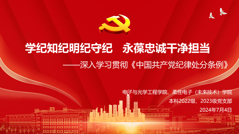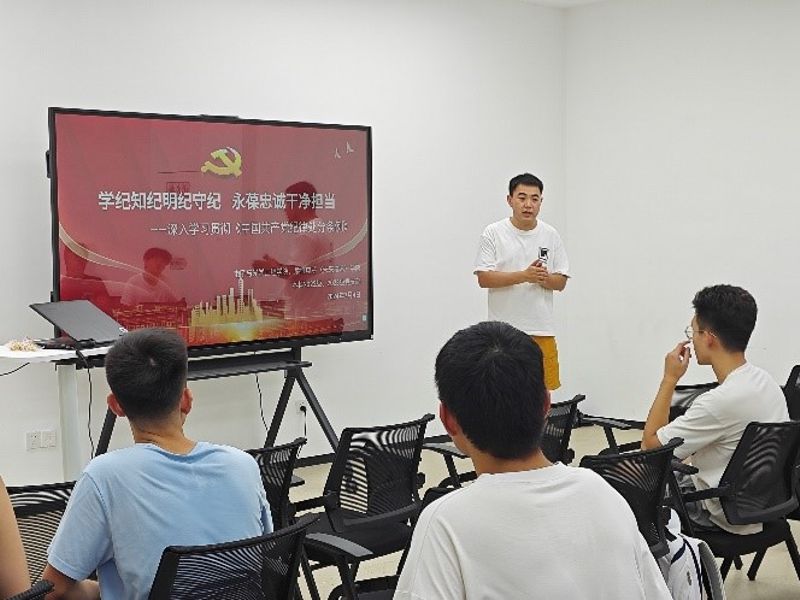 为帮助党员深刻理解《中国共产党纪律处分条例》, 7月4日,太阳成集团tyc234cc本科2022、2023级党支部成功开展“学纪知纪明纪守纪,永葆忠诚干净担当”党纪学习教育党课。本次党课由党支部书记强增寿主持,本科2022、2023级党支部全体党员参加。