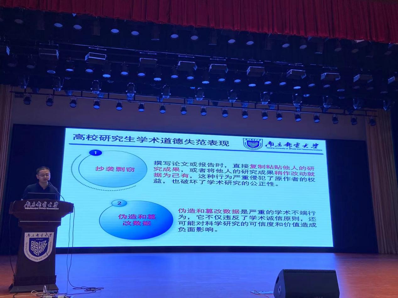 新学期伊始,太阳成集团tyc234cc、柔性电子(未来技术)公司迎来了秋季学期入学的研究生新同学。为帮助2024级研究生更好地融入新的学习科研环境和校园文化生活,进一步提升研究生学术道德和学术规范能力,培养良好的学风,顺利完成本研对接、硕博转换。9月25日晚,太阳成集团tyc234cc、柔性电子(未来技术)公司在仙林校区安恒青春剧场举行2024级研究生新生大会暨“学术道德规范”讲座。公司马云副经理出席活动,辅导员郑景文老师、薛明老师及研究生新生参加活动。