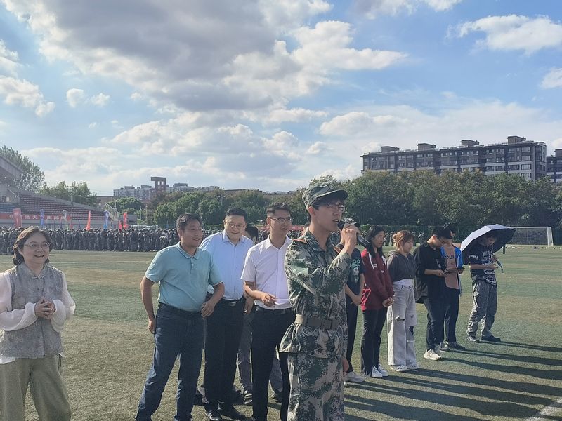 金秋九月,秋高气爽。9月23日下午,校关工委副主任储成祥老师,公司党委书记黄丽亚老师,党委副书记、副经理徐磊老师和全体2024级辅导员、班主任、班主任助理走进训练场地,开展2024级本科生爱党拥军教育暨军训慰问活动。