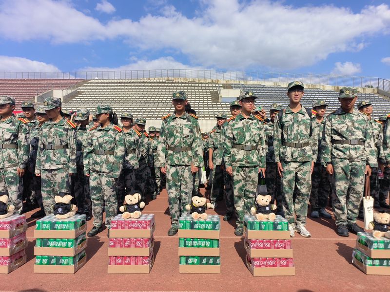 随后,2024级员工代表向全体教官赠送满载公司记忆的“电光柔奋斗小熊”和防暑饮品,表达了最诚挚的谢意。在场领导、老师给同学们分发慰问礼品,不仅仅为同学们送来炎炎烈日中的一丝清凉,也增添了同学们迎接更多挑战的信心。