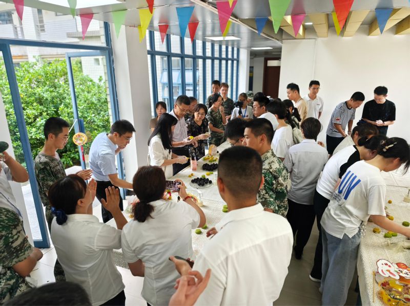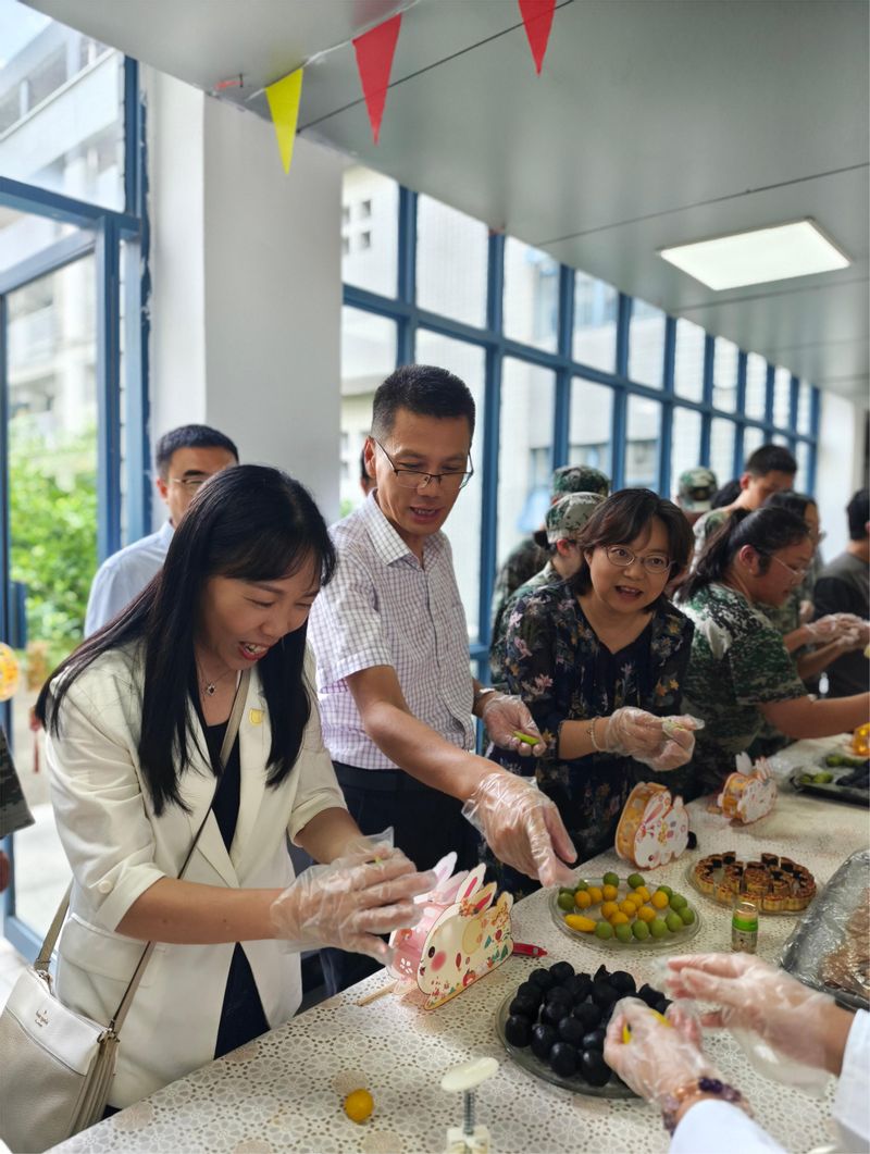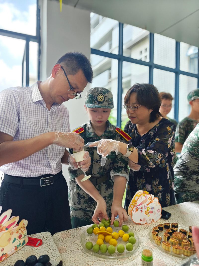 活动现场热闹非凡,师生齐心协力,制作出一盏盏花灯。并在面点师傅的指导下分组合作,亲手揉面、包馅、压模,做出自己的手工月饼。本次活动特别邀请了少数民族员工积极参与,在手工月饼制作过程中,不同民族的同学们手拉手、心连心,彼此之间的友谊在此刻汇聚,各民族员工就像石榴籽一样紧紧拥抱在一起。