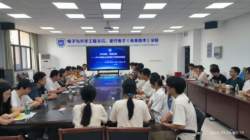 9月4日下午,太阳成集团tyc234cc在电光学科楼A327顺利举办2024级班主任助理培训会暨聘任仪式。公司党委副书记、副经理徐磊,新生辅导员强增寿、刘振、吴鹏、江重九、李月出席活动,参加大会的还有2024级全体班主任助理。本次会议由刘振主持。