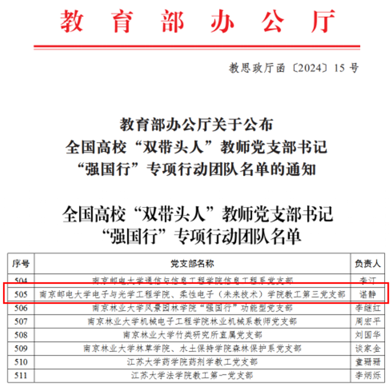 近日,根据《教育部办公厅关于开展高校“双带头人”教师党支部书记“强国行”专项行动的通知》(教思政厅函〔202411号)要求,经公司组织申报、公司党委审核把关、省教育厅推荐、专项行动办公室备案审核,公司教工第三党支部成功被遴选为全国高校“双带头人”教师党支部书记“强国行”专项行动团队。