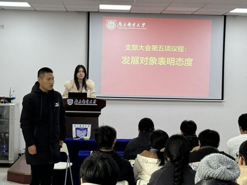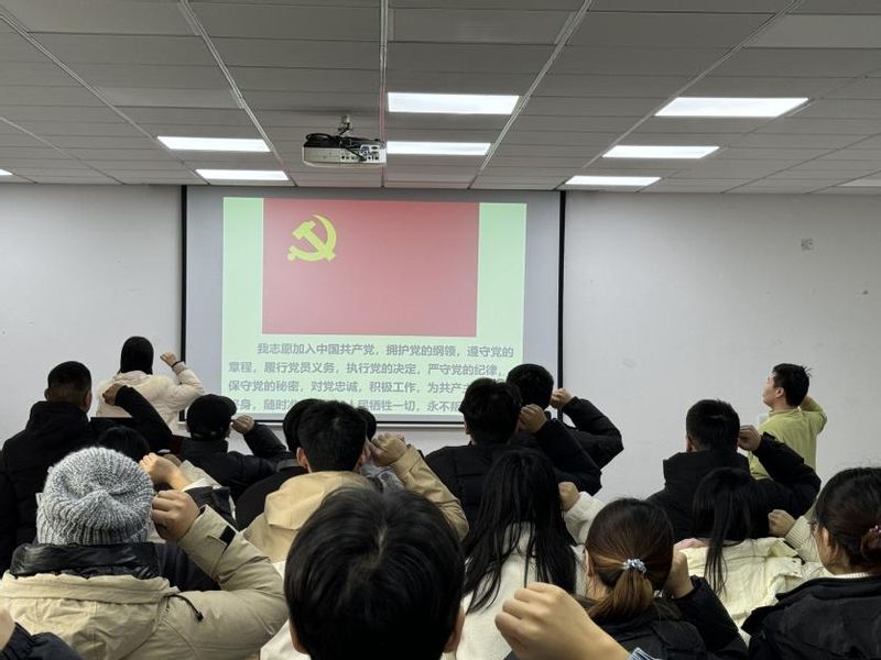 会议首先由杨成等11名同学依次宣读入党志愿书,汇报了作为入党积极分子期间思想和工作等情况。支部书记刘心宇和孜乃提古丽·布尔汉同志分别介绍了11位同学的考察培养情况,主要从发展对象的思想政治表现、学习生活情况、工作表现等方面进行介绍,并对相关发展对象能否入党表明自己的意见。随后,支部副书记雷蕾报告了对发展对象的政治审查情况并提出意见。与会党员根据平时了解的情况,指出了11名拟接收为预备党员同志的优点以及目前存在的不足。杨陈同志作为代表,对党员同志们提出的问题作表态发言,明确接下来的工作中努力方向。最后,根据考察与表现,与会17位正式党员经无记名投票,一致同意接收杨成等11名同学成为中共预备党员,并由陆彦翔同志带领与会党员宣读入党誓词。
