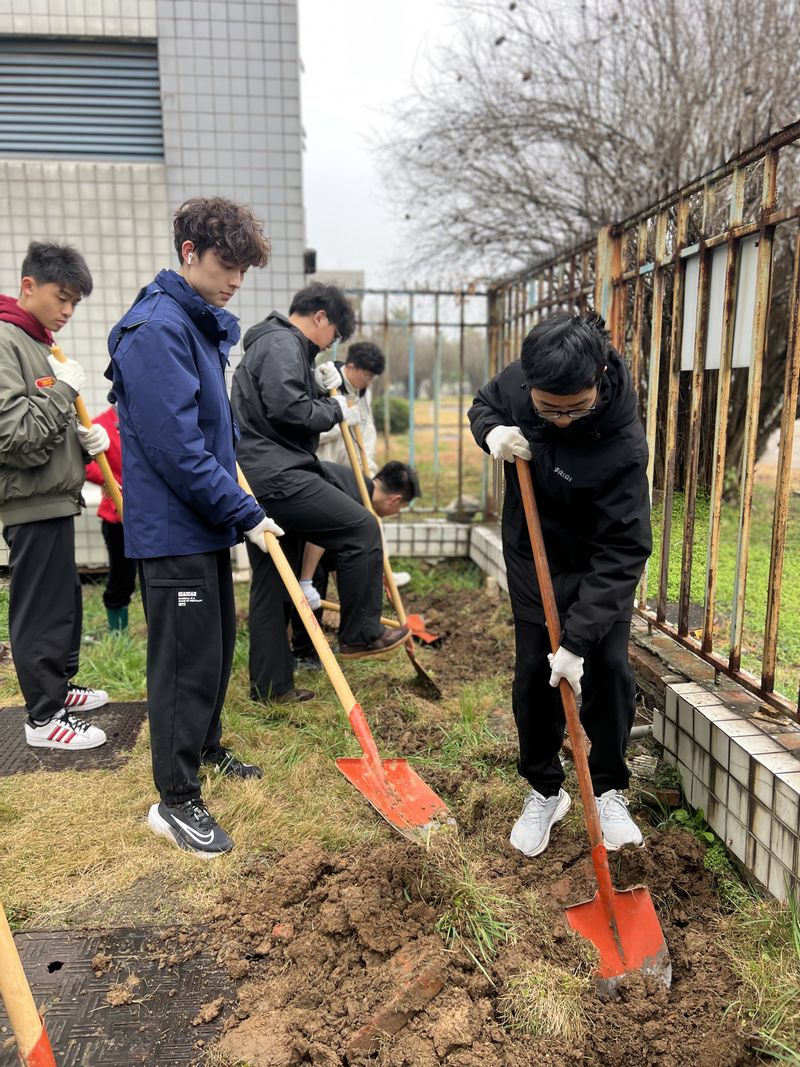 在公司党委副书记、副经理徐磊的统筹指导下,2024级本科生辅导员团队与宿舍管理员精心组织,五十余名师生积极参与。活动现场呈现出一派热火朝天的劳动景象。师生们分工明确,配合默契:有的挥锹挖土,有的扶苗栽种,有的浇水施肥,还有的负责培土固根。经过三个中午的辛勤劳动,近百株蔷薇花苗在宿舍区安家落户,为校园增添了一道亮丽的风景线。
