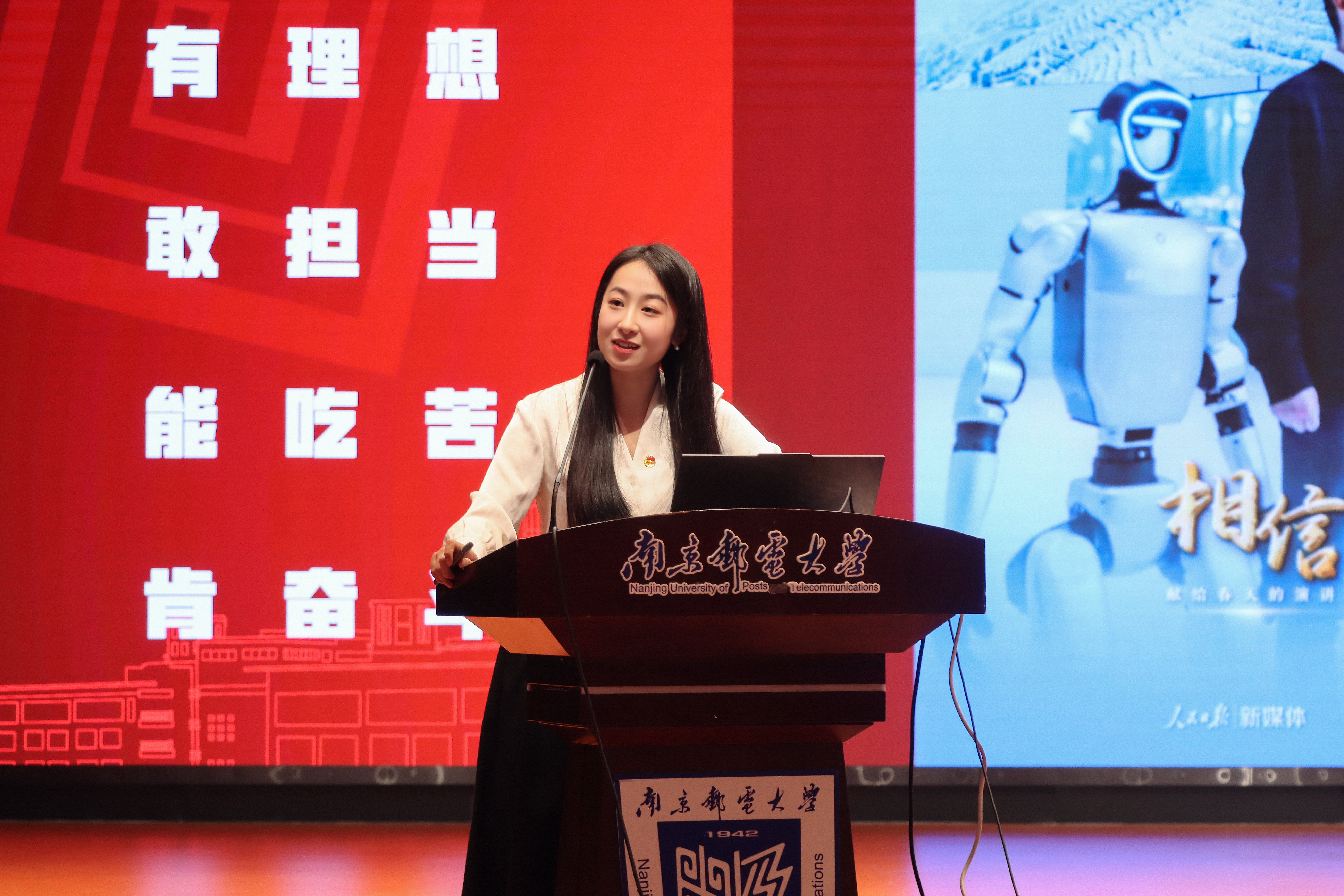 2022级柔性电子学本科生、创新创业先锋孙宁带来了《青春与时代同频共振》主题分享。今天的我们,既是追光者,也是筑梦人:在实验室破解 “卡脖子” 技术,在乡村振兴中播撒希望种子,在国际舞台传递中国声音。愿我们永远怀揣 “功成不必在我、功成必定有我” 的担当,让个人理想与时代使命同频,以青春之我丈量时代的刻度,在民族复兴的征程中书写属于我们这代人的光荣与梦想!