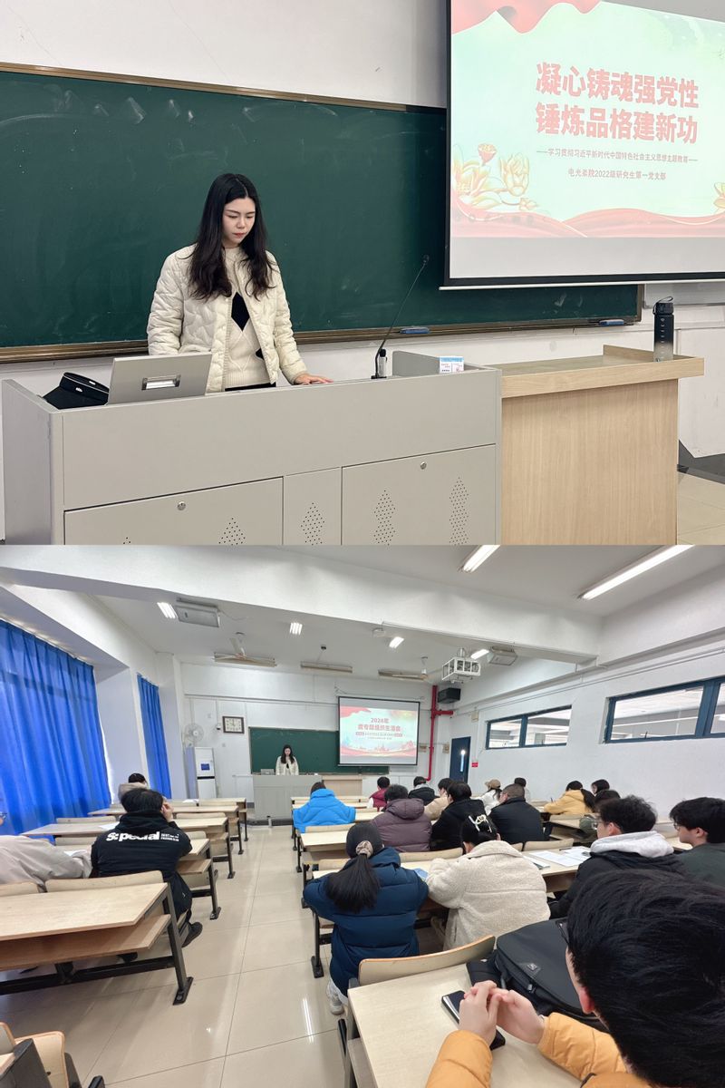此次专题党课将政治理论学习与科研实践紧密结合,进一步强化了研究生党员的责任意识和创新意识。支部成员一致表示,将以两会精神为指引,以新质生产力发展为赛道,在攀登科技高峰中锤炼党性品格,为推进中国式现代化建设贡献青春力量。