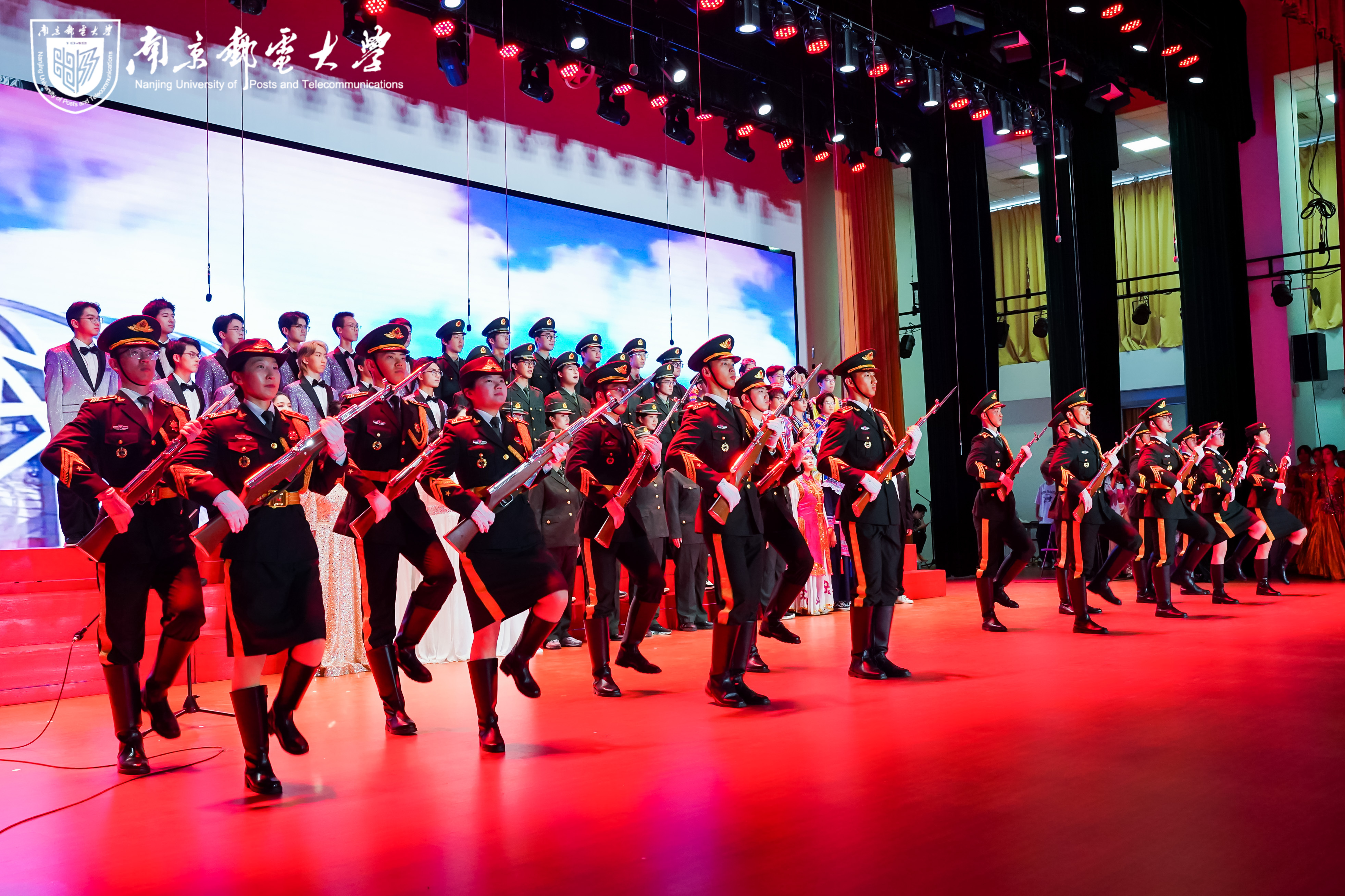 青春力量激荡复兴征程。当“前进 前进 向前进”的音乐响起,公司国旗护卫队同学手执钢枪、迈着铿锵的步伐出场。他们身着墨绿礼服,肩章金穗垂落如麦浪,胸前徽章在追光下灼灼生辉。分列式变换时,枪械操演的金属撞击声与音乐节拍严丝合缝,每个动作都带着千钧之力,仿佛从烽火中走来的青铜群像被注入了新时代的灵魂。同心圆里升起永不落的中国、青春脚印丈量复兴的征程,彰显新时代青年的使命担当。