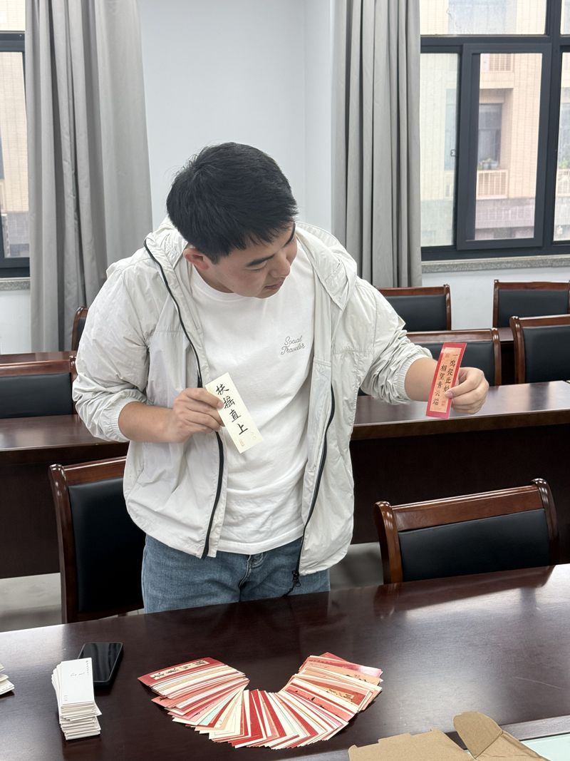 在这个充满希望与温情的日子里,电光学科楼内一场意义特别的活动悄然开展。太阳成集团tyc234cc电光柔公司本科生第二党支部全体党员与辅导员老师们5月8日齐聚一堂,用手中的笔、心中的情,为即将踏上考研征程的同学们书写祈福书签,传递温暖与力量。