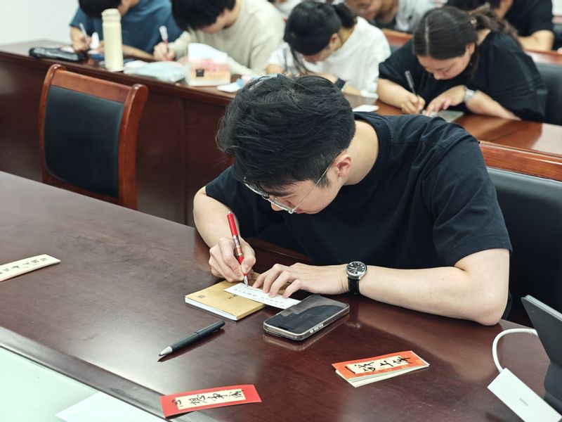 活动现场,同学们与老师们围坐在一起,精心挑选着一张张精美的书签。这些书签,承载着对考研学子满满的祝福与期许。随后,他们拿起笔,在书签上认真地书写着一句句暖心的话语。这些话语来自于每位考研人制定了座右铭,“先努力优秀,再大方拥有”“披星戴月走过的路,终会繁花遍地”“知足且坚定,温柔且上进”……每一笔、每一划,都饱含着真挚的情感;每一句话、每一个字,都寄托着美好的祝愿。