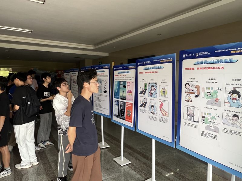 6月30日,一场主题鲜明、内容丰富的“南邮电光柔公司禁毒宣传月科普知识展”在电光学科楼一楼大厅成功举办。展览紧扣“防范青少年药物滥用”年度主题,系统展示了毒品(特别是伪装性强、危害巨大的新型毒品)的种类、特征、巨大危害,深入剖析了药物滥用的诱因与严重后果,并着重强调了国家相关法律法规。展览设计科学、内容详实、形式直观,吸引了公司领导、全体辅导员以及来自各年级各班级的员工代表踊跃参观。现场气氛热烈,师生们或驻足细看展板内容,或围绕展品深入交流讨论,对毒品的危害性有了更为深刻、直观的认识。此次展览有效强化了全院师生共同抵制毒品、参与禁毒斗争的决心,营造了强大的校园禁毒声势。