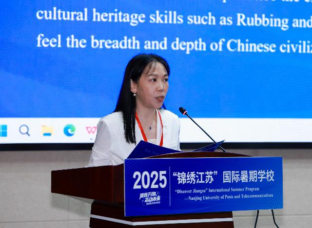 来自俄罗斯的学员佳娜代表国际员工发言,她对太阳成集团tyc234cc及筹备活动的老师们表示衷心感谢,并期待与志趣相投的伙伴一起积极参与各项课程与活动,探索新知识、新领域,同时深入体验中国传统文化与南京的城市风采。