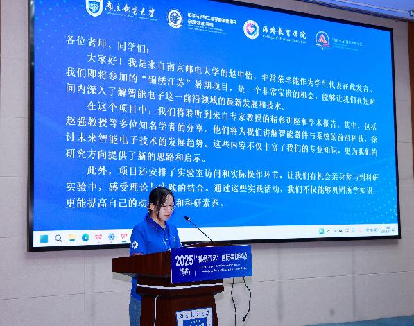 中国学员代表赵申怡在发言中感谢公司提供这一多元化的学习平台,让她能够在学术交流中提升认知,在文化体验中开阔眼界。她表示非常期待通过课程深入了解智能电子技术的最新进展,强化实践与科研能力,并通过文化课程感受南京的历史底蕴与中华传统文化的魅力。